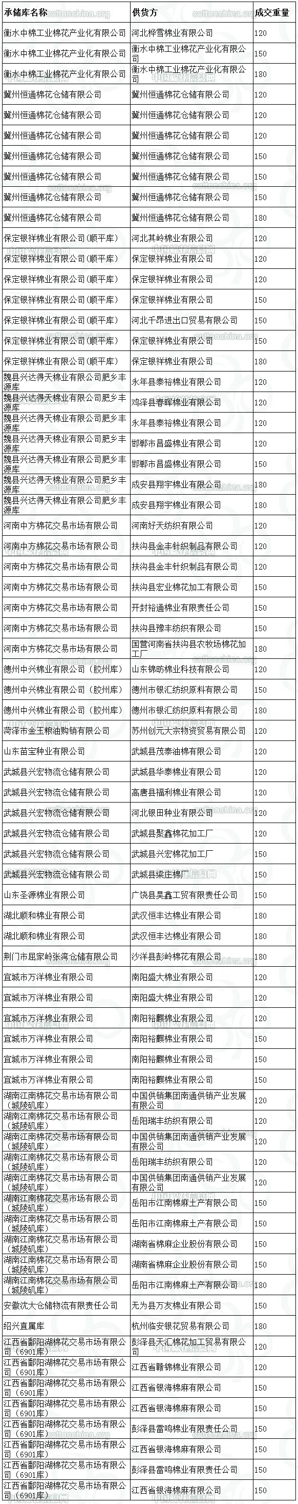錦橋紡織網(wǎng)—資訊頻道> 棉花信息> 收儲(chǔ)>正文 1月30日收儲(chǔ)成交結(jié)果