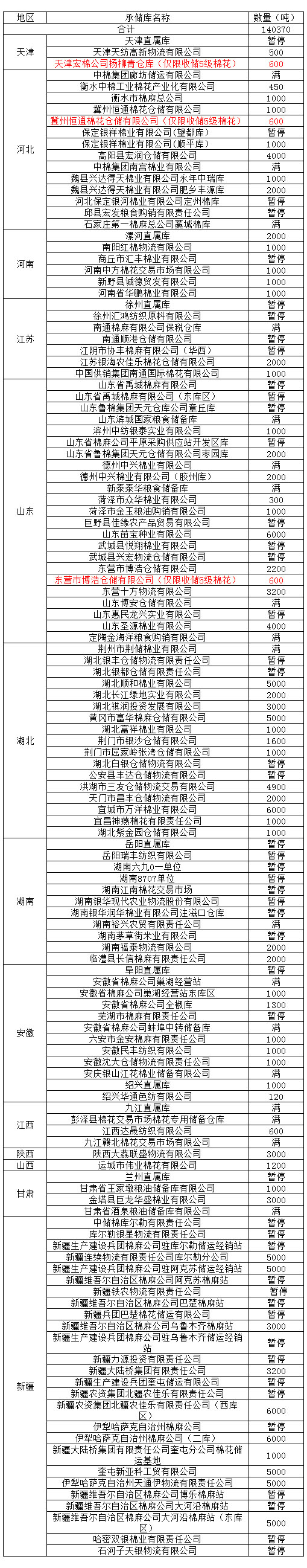 定于1月7日在以下指定倉(cāng)庫(kù)收儲(chǔ)2012年度棉花140370噸。哈密雙銀棉業(yè)有限責(zé)任公司僅限東疆棉花企業(yè)競(jìng)拍,新疆維吾爾自治區(qū)棉麻公司博樂(lè)棉麻站僅限于博樂(lè)地區(qū)棉花企業(yè)競(jìng)拍,以上庫(kù)點(diǎn)其他地區(qū)企業(yè)競(jìng)拍將按違約處理。