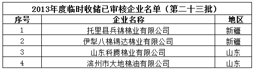 2013年度棉花臨時(shí)收儲(chǔ)已審核企業(yè)名單(第二十三批)