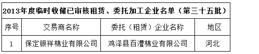 2013年度棉花臨時(shí)收儲已審核租賃、委托加工企業(yè)名單(第三十五批)