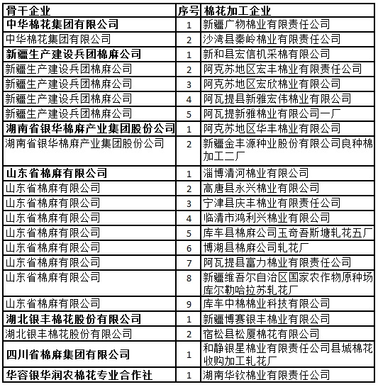 錦橋紡織網(wǎng)—資訊頻道> 棉花信息> 收儲>正文 骨干企業(yè)交儲名單(第六批)