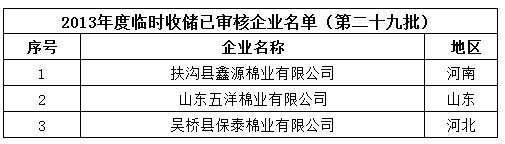 2013年度棉花臨時收儲已審核企業(yè)名單(第二十九批)