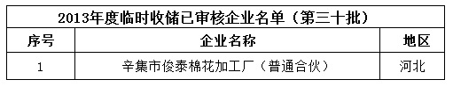 2013年度棉花臨時(shí)收儲(chǔ)已審核企業(yè)名單(第三十批)