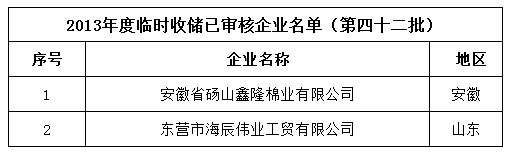 2013年度棉花臨時收儲已審核企業(yè)名單(第四十二批)