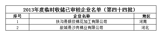2013年度棉花臨時收儲已審核企業(yè)名單(第四十四批)