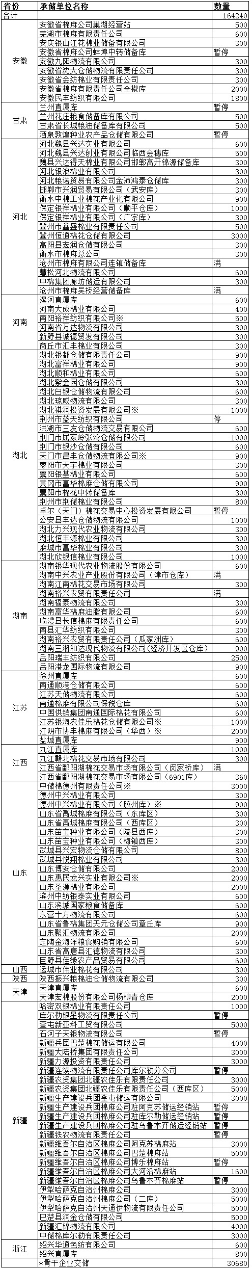 錦橋紡織網(wǎng)—資訊頻道> 棉花信息> 收儲>正文 12月4日收儲預(yù)告:計劃收儲164240噸