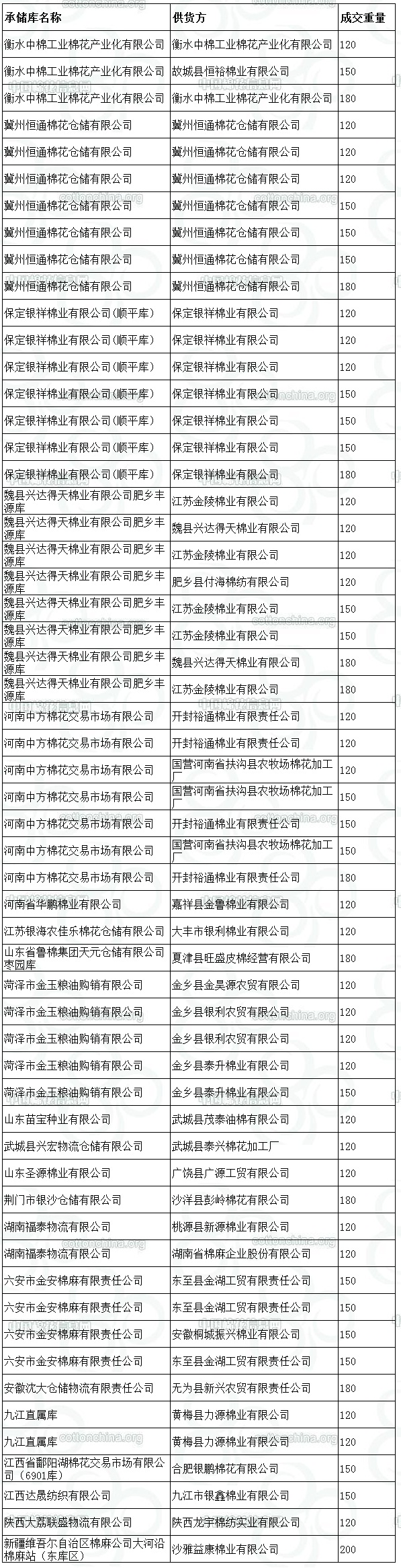 錦橋紡織網(wǎng)—資訊頻道> 棉花信息> 收儲(chǔ)>正文 1月31日收儲(chǔ)成交結(jié)果
