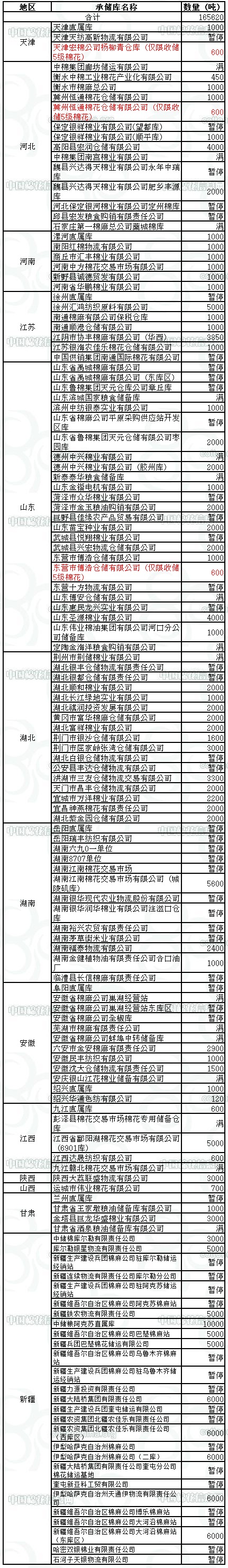 定于2月1日在以下指定倉庫收儲2012年度棉花165620噸。哈密雙銀棉業(yè)有限責(zé)任公司僅限東疆棉花企業(yè)競拍,新疆維吾爾自治區(qū)棉麻公司博樂棉麻站僅限于博樂地區(qū)棉花企業(yè)競拍,以上庫點(diǎn)其他地區(qū)企業(yè)競拍將按違約處理。