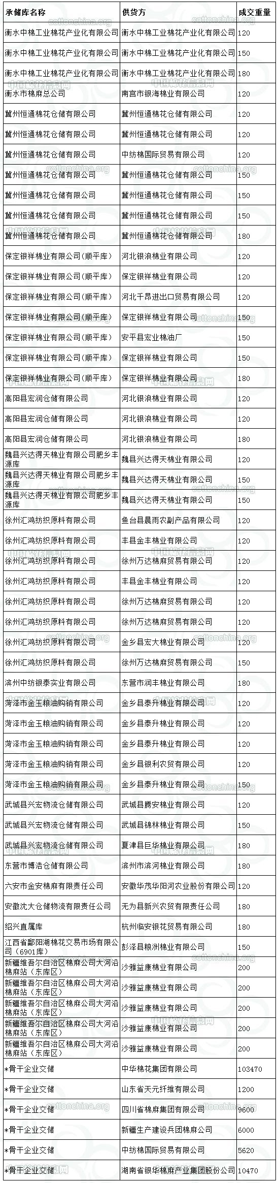 錦橋紡織網(wǎng)—資訊頻道> 棉花信息> 收儲>正文 2月1日收儲成交結(jié)果