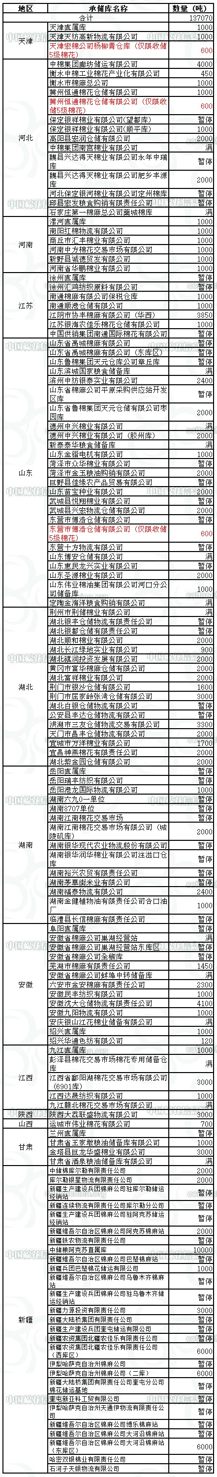 錦橋紡織網(wǎng)—資訊頻道> 棉花信息> 收儲>正文 2月27日收儲預(yù)告:計劃收儲137070噸