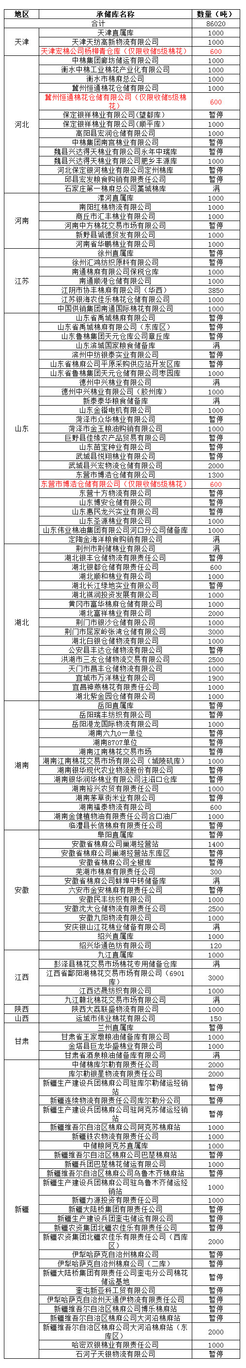 定于3月25日在以下指定倉(cāng)庫(kù)收儲(chǔ)2012年度棉花86020噸。哈密雙銀棉業(yè)有限責(zé)任公司僅限東疆棉花企業(yè)競(jìng)拍,新疆維吾爾自治區(qū)棉麻公司博樂棉麻站僅限于博樂地區(qū)棉花企業(yè)競(jìng)拍,以上庫(kù)點(diǎn)其他地區(qū)企業(yè)競(jìng)拍將按違約處理。