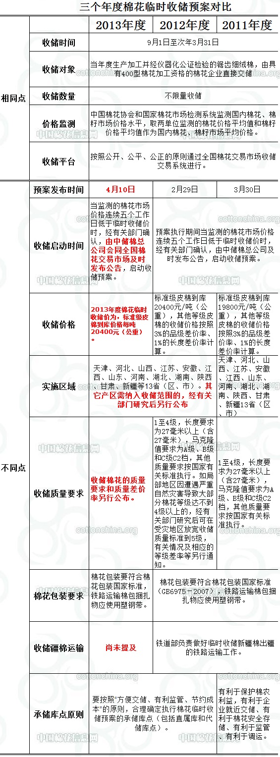 錦橋紡織網(wǎng)—資訊頻道> 棉花信息> 收儲>正文 2013年度收儲預(yù)案與前兩個年度收儲預(yù)案對比