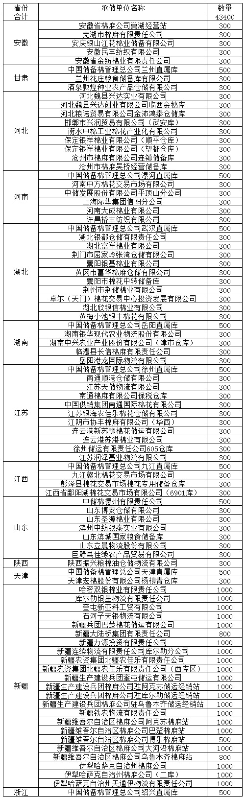 錦橋紡織網(wǎng)—資訊頻道> 棉花信息> 收儲(chǔ)>正文 9月13日收儲(chǔ)庫點(diǎn)及數(shù)量