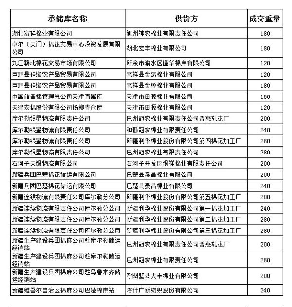 錦橋紡織網(wǎng)—資訊頻道> 棉花信息> 收儲(chǔ)>正文 9月23日收儲(chǔ)成交結(jié)果
