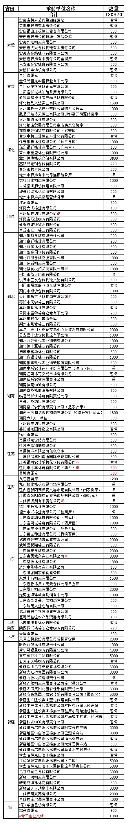 錦橋紡織網(wǎng)—資訊頻道> 棉花信息> 收儲(chǔ)>正文 1月2日收儲(chǔ)預(yù)告:計(jì)劃收儲(chǔ)130370噸
