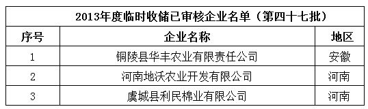 2013年度棉花臨時(shí)收儲(chǔ)已審核企業(yè)名單(第四十七批)