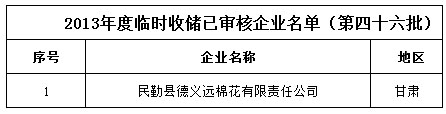 2013年度棉花臨時(shí)收儲(chǔ)已審核企業(yè)名單(第四十六批)