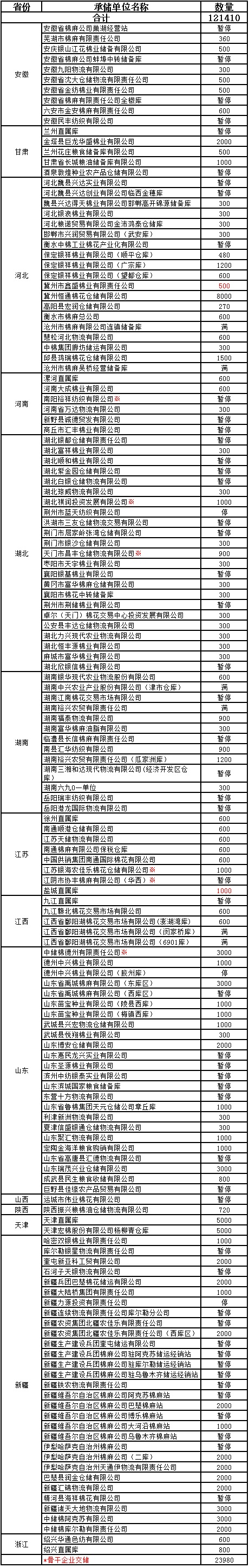 錦橋紡織網(wǎng)—資訊頻道> 棉花信息> 收儲(chǔ)>正文 2月17日收儲(chǔ)預(yù)告:計(jì)劃收儲(chǔ)121410噸