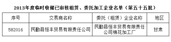 2013年度棉花臨時收儲已審核租賃、委托加工企業(yè)名單(第五十五批)