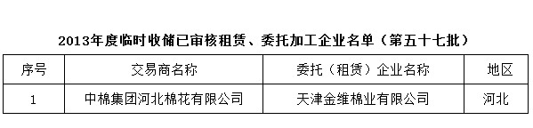 2013年度棉花臨時(shí)收儲(chǔ)已審核租賃、委托加工企業(yè)名單(第五十七批)