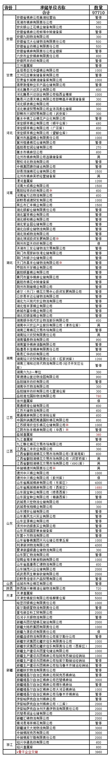 錦橋紡織網(wǎng)—資訊頻道> 棉花信息> 收儲(chǔ)>正文 3月7日收儲(chǔ)預(yù)告:計(jì)劃收儲(chǔ)97710噸