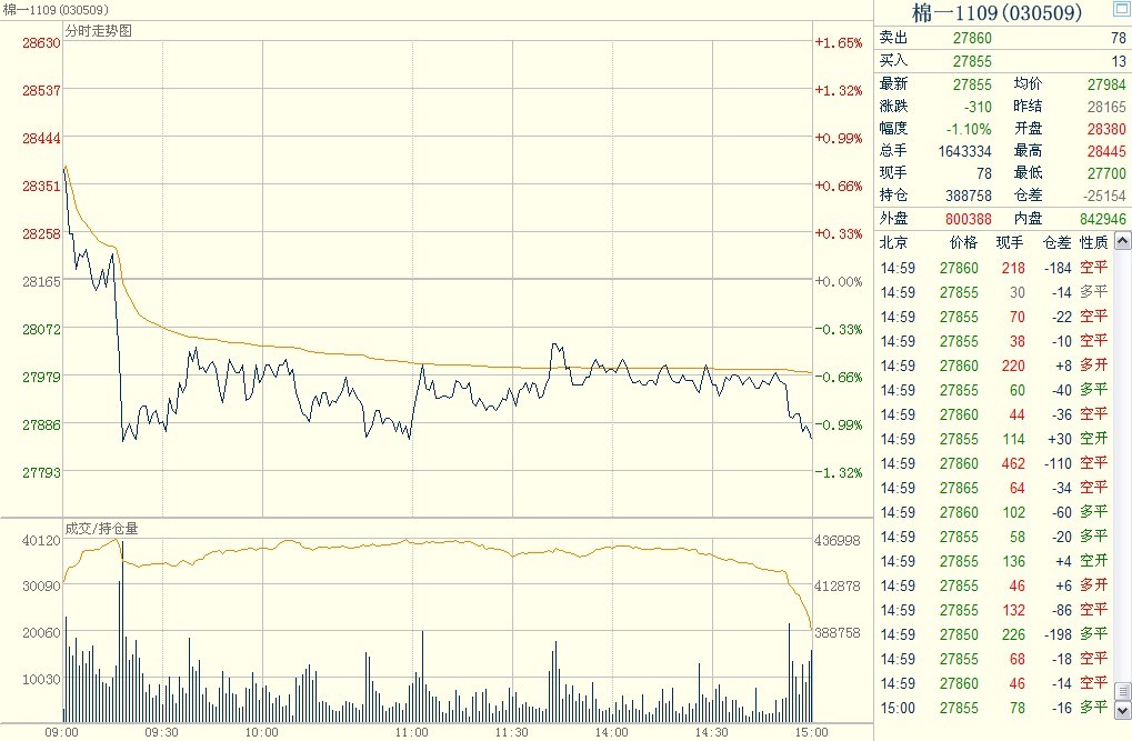 今日棉花1109合約高開低走,收于27855,跌穿5日均線。紗線現(xiàn)貨訂單量少,沒有太多支撐棉價(jià)大幅上漲的基本面信息。建議有棉花庫存的企業(yè)繼續(xù)逢高放空棉花,對(duì)庫存價(jià)值進(jìn)行保值。關(guān)注28500附近壓力,靠近此價(jià)位可嘗試放空。今日鄭州品種表現(xiàn)普遍偏弱,包括白糖,pta,后市的政策調(diào)控及下游需求不足將直接制約價(jià)格上漲。僅供參考?!颈疚挠摄y河期貨供稿】 棉紡企業(yè)套期保值顧問團(tuán) 高級(jí)顧問:劉耀 銀河期貨青島營(yíng)業(yè)部 地址:青島市香港中路12號(hào)豐合廣場(chǎng)C區(qū)201(266071) QQ:75088936 電話:0532-80661672 手機(jī):13553092387 E-mail:liuyao@chinastock.com.cn 銀河期貨套期保值顧問團(tuán):http://www.cf99.cn/yh.htm