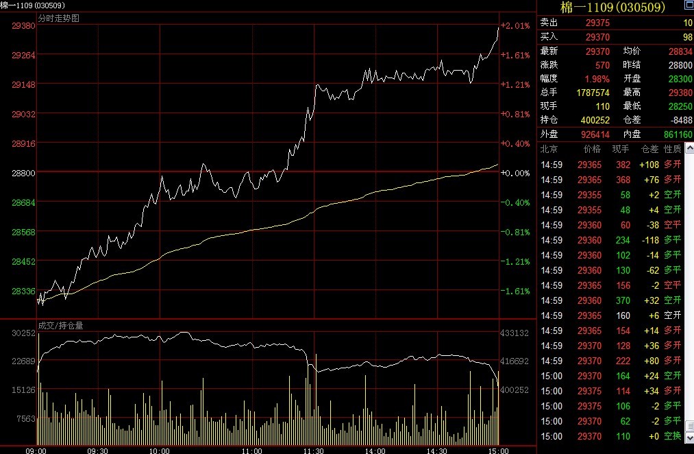 鄭棉強(qiáng)勢(shì)上漲,主力合約累計(jì)漲幅近千元。但是持倉(cāng)量出現(xiàn)下降。今日晚間美國(guó)農(nóng)業(yè)部將公布4月全球棉花供需預(yù)測(cè),預(yù)計(jì)消費(fèi)數(shù)據(jù)將有所調(diào)整。技術(shù)上看,鄭棉仍然有反彈要求,但是不建議追高。近期關(guān)注3月出口數(shù)據(jù)變化,短線操作,僅供參考。【本文由銀河期貨供稿】 棉紡企業(yè)套期保值顧問(wèn)團(tuán)高級(jí)顧問(wèn):劉耀 銀河期貨青島營(yíng)業(yè)部 地址:青島市香港中路12號(hào)豐合廣場(chǎng)C區(qū)201(266071) QQ:75088936 電話(huà):0532-80661672 手機(jī):13553092387 E-mail:liuyao@chinastock.com.cn 銀河期貨套期保值顧問(wèn)團(tuán):http://www.cf99.cn/yh.htm