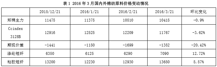 國內(nèi)棉花,供應(yīng)方面,截止2月底,國內(nèi)棉花商業(yè)庫存仍有208萬噸,而4月中下旬的儲(chǔ)備棉輪出將大量增加現(xiàn)貨資源。需求方面,由于有4月份儲(chǔ)備棉輪出的預(yù)期,因此下游紡織企業(yè)都?jí)嚎s庫存,隨用隨買,對(duì)于棉花的采購都持謹(jǐn)慎態(tài)度。而且下游的需求在第一季度仍未見明顯好轉(zhuǎn),部分中小企業(yè)春節(jié)之后就未再開工。前兩個(gè)月中國紡織品服裝出口繼續(xù)減少,但棉花和棉紗的進(jìn)口量也在減少。鄭棉主力合約第一季度中波動(dòng)也比較大,春節(jié)前后大幅走低,3月份之后價(jià)格有反彈,并大幅震蕩。同期我國粘膠短纖價(jià)格上漲,滌綸短纖價(jià)格也大幅上漲。