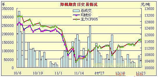 12月23日,鄭棉主力合約CF905平開,早盤多頭平倉打壓期價下滑,隨后空頭回補(bǔ)與多頭買盤支撐期價反彈,午后因股市加速下跌引領(lǐng)鄭棉一度跳水,尾盤在空頭回補(bǔ)買盤推動下反彈,主要合約成交量萎縮,持倉量下降。C901合約日成交410手,日減倉206手,終盤持倉量6024手;CF905合約日成交39465手,日減倉1618手,終盤持倉量42768手;CF907合約日成交372手,日減倉82手,終盤持倉量3354手。
