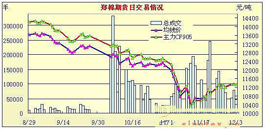 12月3日鄭棉期貨低開下滑區(qū)間縮量繼續(xù)整理