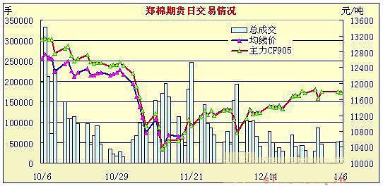 1月6日鄭棉期貨放量增倉尾盤收弱