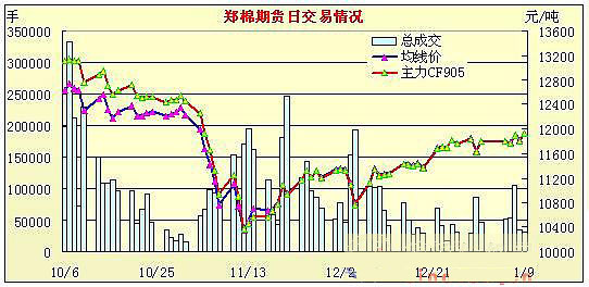 1月9日鄭棉期貨高開上揚(yáng)縮量上漲