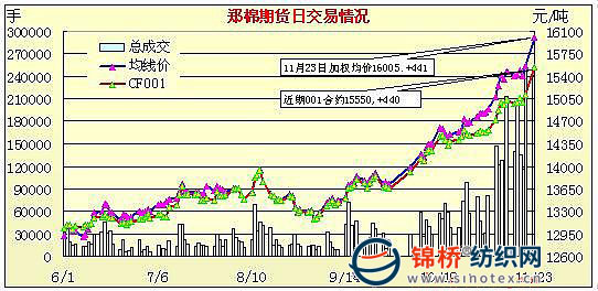 鄭棉期貨增倉縮量終盤全線漲停(11-23)