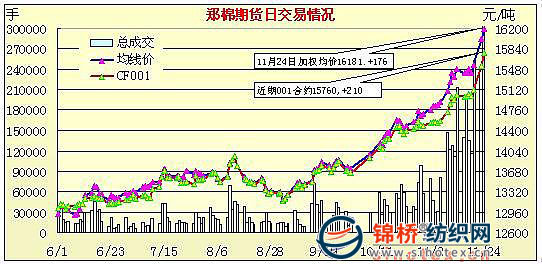 鄭棉期貨放量增倉(cāng)續(xù)漲百余元(11-24)