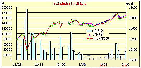 2月16日鄭棉期貨增倉放量小幅續(xù)漲