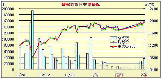 2月6日鄭棉期貨放量增倉(cāng)中幅上揚(yáng)