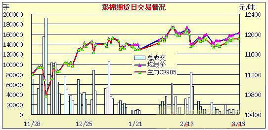 3月16日鄭棉期貨高開(kāi)收星減倉(cāng)縮量