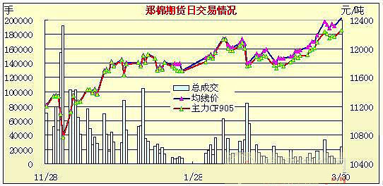3月30日鄭棉期貨低開(kāi)上揚(yáng)放量大漲