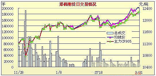 3月31日,今日鄭棉主力合約CF907高開,早盤調(diào)整后在多頭買盤推動下沖高,午后多頭短線回吐打壓期價回落,日線形成高開陰線星,主要合約成交量萎縮,近期合約持倉下降,遠月持倉量微增。C905合約日成交3986手,日減倉990手,終盤持倉量16796手;CF907合約日成交8766手,日增倉112手,終盤持倉量28436手;CF909合約日成交848手,日減倉276手,終盤持倉量6080手?;久媲闆r:各地棉花現(xiàn)貨價格表現(xiàn)平穩(wěn),成交量一般,第三批收儲計劃有望在本周內(nèi)結(jié)束,市場上企業(yè)心態(tài)趨于兩極化,一些看好后市的棉花企業(yè),高價收購籽棉,存棉待漲;而另一些企業(yè)則積極銷售兌現(xiàn)。籽棉收購市場價格保持平穩(wěn),收購量也跟著棉花企業(yè)的兩極分化產(chǎn)生差別,看好后市的企業(yè)積極收購,而不看好后市的企業(yè),由于利潤空間的縮小,停收的有所增多。 3月31日鄭棉期貨成交及持倉排名表 |