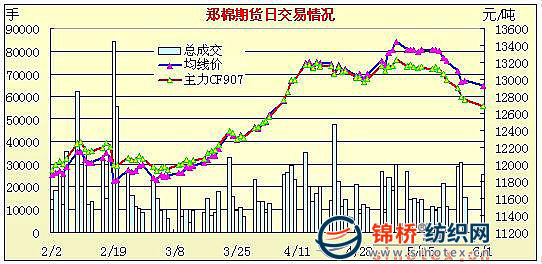 6月1日鄭棉期貨減倉放量全線下跌