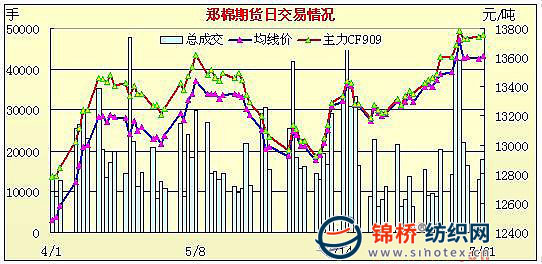 7月21日,鄭棉高開高走,CF909合約早盤沖高后減倉震蕩,日線形成小陽線,日內(nèi)成交量萎縮,持倉量減少;CF1001合約早盤沖高,盤中在多頭平倉的壓力下減倉下跌,終盤收于日低,日線形成長上影線的陰線,盤中成交量較萎縮,持倉量變化不大。CF909合約日成交2044手,日減倉788手,終盤持倉量22510手;CF1001合約日成交14826手,日增倉186手,終盤持倉量33606手?;久媲闆r:受拋儲(chǔ)價(jià)格上漲影響,現(xiàn)貨價(jià)格繼續(xù)上漲,328級(jí)棉漲到13000元/噸以上。有關(guān)部門對(duì)拋儲(chǔ)進(jìn)行了微調(diào),首先是暫停紡織企業(yè)委托棉花流通企業(yè)交易商代理其競拍儲(chǔ)備棉;其次是在上周末的時(shí)候降低了單捆棉花的重量,大小均有,等級(jí)分布也較均勻;同時(shí)在推出的拋儲(chǔ)計(jì)劃中可以看出,日拋儲(chǔ)數(shù)量和庫點(diǎn)的分布有所增加。國家宏觀調(diào)控的目標(biāo)是保障市場供應(yīng),穩(wěn)定棉花市場,讓棉花真正流通到紡織企業(yè)的手中,因此預(yù)計(jì)受此影響棉價(jià)將有所回落。