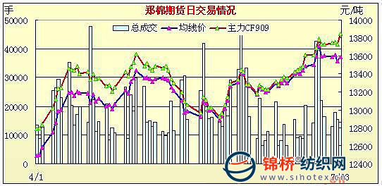 7月23日,鄭棉CF909合約早盤平開盤整,午間多頭買盤增量推動期價走高,午后重心上移盤整,日線形成長陽線,日內(nèi)成交量放大,持倉量大量增加;CF1001合約早盤沖高后受平倉盤打壓回落,午前多頭買盤再涌,期價隨之迅速上沖創(chuàng)日高,但是期價再度遭遇平倉盤打壓調(diào)整,午后窄幅整理,尾盤在空頭賣盤打壓下收低,日線形成星線,日內(nèi)成交量萎縮,持倉量小幅增加。CF909合約日成交4500手,日減倉1174手,終盤持倉量23366手;CF1001合約日成交9688手,日減倉446手,終盤持倉量32774手?;久媲闆r:受拋儲價格上漲影響,現(xiàn)貨價格繼續(xù)上漲,但是各地漲幅開始趨緩,持有國儲棉的棉商改變了放緩銷售的心理,出貨意圖明顯,但成交依舊不大。對于目前市場的走勢,許多紡織廠表示出了觀望的心理,主要原因是前期競拍的棉花正在出庫中,尚有庫存可用,不急于購棉,對市場價格有看低心理。其次是,預(yù)計此次計劃拋儲的52.3萬噸陳棉會在今日結(jié)束,后期是否會追加競拍量,以及陳棉過后09年度的收儲棉價格又會有怎樣的走勢,引起市場關(guān)注,市場隱現(xiàn)觀望情緒。