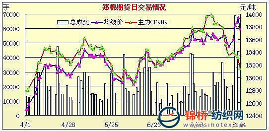 8月14日,鄭棉CF1001合約平開,早盤多頭平倉打壓期價下滑,午后減倉盤整,日線形成長陰線,主要合約成交量變化不大,持倉量大幅減少。CF1001合約日成交37856手,日減倉9172手,終盤持倉量47032手;CF1005合約日成交2092手,日增倉44手,終盤持倉量4866手。基本面情況:有關部門首次公布了第一批暫停國儲棉競買交易的紡織企業(yè)名單,受此影響儲備棉競拍交易商參與人數(shù)減少,競拍均價雖然有小幅上漲,但是競拍最高價格開始回落。近期內地庫點棉花存在單捆數(shù)量上適中、各等級棉花分布均勻、新疆棉數(shù)量有所增加等優(yōu)勢,成交情況積極。現(xiàn)貨上棉商出貨積極,據(jù)了解,個別地區(qū)一些棉商已經開始降價銷售手中的余棉,以求落袋為安,降價幅度在200元/噸左右。由于近期坊間傳聞國家將會在此次拋儲結束后繼續(xù)推出60萬噸儲備棉競拍,引起市場對價格的擔憂。