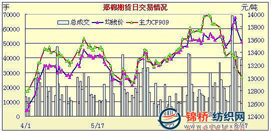 鄭棉期貨再度大幅減倉兩連跌300余元(8-17)