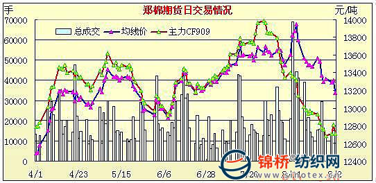 9月2日,鄭棉CF1001合約大幅低開,早盤反彈后增倉回落,午前盤整換手,午后在空頭賣盤打壓下測試支撐位,隨后在空頭回補(bǔ)支撐下反彈,日線形成低開陰線,主要合約成交量變化不大,持倉量小幅減少。CF1001合約日成交13206手,日減倉686手,終盤持倉量34742手;CF1005合約日成交916手,日增倉56手,終盤持倉量5156手。基本面情況:現(xiàn)貨價(jià)格繼續(xù)走低,跌幅較前期有所加深,儲備棉競拍價(jià)格連續(xù)兩日小幅上漲,但是并沒有對現(xiàn)貨起到支撐作用,近兩日參與人數(shù)的偏少,成交比例的萎縮也反映出了市場看空的氣氛。截止8月31日,國儲棉競拍累計(jì)成功拋售儲備棉1526062噸,其中2008年度儲備棉998814噸,2003/2004年度棉花527248噸,第一批拋儲計(jì)劃基本完成。新年度開始,各棉區(qū)開秤范圍擴(kuò)大,200型的小廠和棉販?zhǔn)召彿e極,400型的廠大多按兵不動,等待市場價(jià)格的進(jìn)一步走勢。開秤的企業(yè)表示今天開秤價(jià)格普遍高于去年,南部棉區(qū)收購價(jià)普遍在2.7-2.85元/斤,北部棉區(qū)在2.8-3元/斤;對目前的收購價(jià)格,棉農(nóng)大多并不認(rèn)同,惜售現(xiàn)象凸顯,只有少數(shù)家里要給孩子籌學(xué)費(fèi)的棉農(nóng)出貨積極。