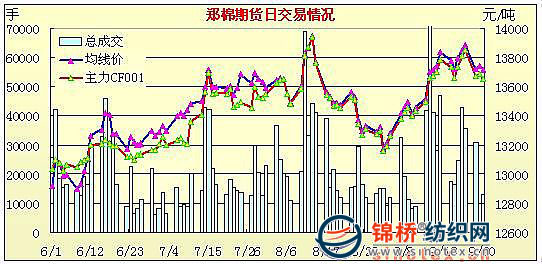 9月30日,鄭棉CF1001合約低開,早盤受到空頭回補(bǔ)支撐下反彈,盤中橫向整理,尾盤在空頭回補(bǔ)推動下收高,日線形成低開陽線星,主要合約成交量依然清淡,持倉量下降。CF1001合約日成交10052手,日減倉3716手,終盤持倉量37426手;CF1005合約日成交2700手,日減倉916手,終盤持倉量10832手?;久媲闆r:受棉油下調(diào)影響,河北、山東等地棉籽出現(xiàn)回落,加上節(jié)前皮棉銷售困難,籽棉價(jià)格冀魯兩地出現(xiàn)回落。但湖北地區(qū)由于皮棉質(zhì)量較好,籽棉價(jià)格今日報(bào)價(jià)繼續(xù)上調(diào),天門地區(qū)最高價(jià)達(dá)到3.07元/斤。大部分加工廠節(jié)前觀望情緒較濃,收購放緩。