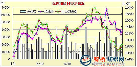 9月4日鄭棉CF1001合約平開高走,早盤橫盤整理,午后在多頭平倉盤打壓下調整重心下移,日線形成3/5上影線的陽線,主要合約成交量微幅放大,持倉量變化不大。CF1001合約日成交11062手,日增倉116手,終盤持倉量34248手;CF1005合約日成交630手,日增倉30手,終盤持倉量5138手。基本面情況:現貨市場價格繼續(xù)保持跌勢,昨日是第二批60萬噸拋儲計劃的首日,兩個年度棉花競拍價格均走高,分析主要原因有兩個,一是陳棉依舊受到歡迎,推出的計劃全部成交;二是昨日所推棉花的多為進口的美棉和內地的新疆棉,所以競拍價格有所提高。目前雖有新棉零星上市,但是由于收購價格較高,生產出來的新棉價格偏高,加上水分較大,等級偏低,一些紡織廠仍是要在國儲棉上拿棉。由于今年植棉面積減少,天氣的影響使得產量讓人擔憂,業(yè)內專家認為2009年棉價有望走出去年持續(xù)走低的“陰霾”,穩(wěn)中趨強。棉價上升的主要原因是貨源偏少。