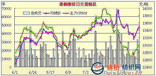 在前日普遍上漲的氛圍下,鄭棉1001合約昨天維持在前日結(jié)算價(jià)上方的震蕩行情,持倉(cāng)略減,成交量大幅回落,看來(lái)鄭棉的上漲行情暫時(shí)還缺乏價(jià)量的配合,從技術(shù)上看,1001合約的價(jià)格雖已沖破5日均線的壓制,但從昨日的走勢(shì)看,漲勢(shì)有所減緩,不過(guò)底部仍有來(lái)自于對(duì)新棉的期待給予棉價(jià)較強(qiáng)的支撐,短期反彈行情暫未結(jié)束,前期多單可部分減持,以5日均線止損。新棉收購(gòu)仍屬清淡,內(nèi)地連續(xù)出現(xiàn)陰雨天氣,影響了新花的采摘及收購(gòu)工作,據(jù)棉花信息網(wǎng)8月份調(diào)查顯示,2009年全國(guó)棉花種植面積為7826萬(wàn)畝,預(yù)計(jì)總產(chǎn)701萬(wàn)噸;與2008年調(diào)查相比,面積減少1079萬(wàn)畝,減幅12%;總產(chǎn)減少84萬(wàn)噸,減幅11%。這也使得目前市場(chǎng)普遍對(duì)籽棉的價(jià)格看漲,棉農(nóng)惜售心理加重,不過(guò)新購(gòu)方與棉農(nóng)的期望價(jià)格以3.0元/噸為分水嶺,令收購(gòu)工作在新棉上市較少的情況下受阻。