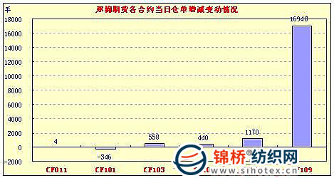 11月10日,鄭棉主要合約高開,早盤大幅震蕩,午間受到空頭賣盤打壓迅速下滑,午后重心下移整理后再度跳水,尾盤在空頭集中回補(bǔ)支撐下反彈,日線形成高開陰線,日內(nèi)成交量萎縮,遠(yuǎn)期合約持倉量增加。CF1105合約日成交1507182手,日增倉440手,終盤持倉量293434手;CF1109合約日成交833504手,日增倉16948手,終盤持倉量152172手?;久媲闆r:新疆棉報(bào)價(jià)居高,棉企及中間商購銷積極,新疆站臺(tái)成交價(jià)31500元/噸左右。內(nèi)地棉報(bào)價(jià)延續(xù)上漲,但加工廠多反映有價(jià)無市,企業(yè)多存棉,成交稀少。加工廠收購籽棉積極,各地最高價(jià)漲至7元/斤左右,棉農(nóng)惜售。