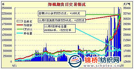 11月8日鄭州商品交易所棉花期貨成交及持倉(cāng)排名表